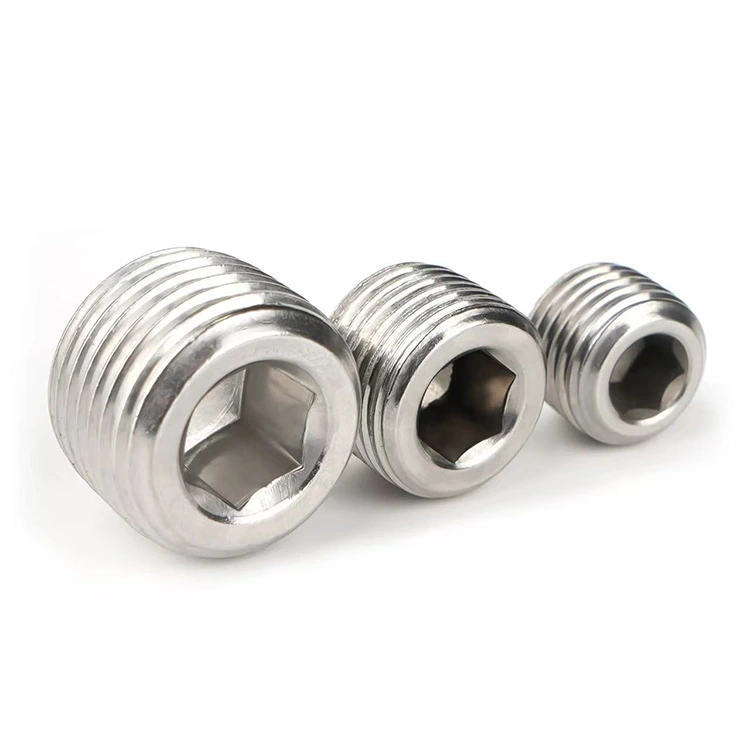 ຊື້ປລັກ Hexagonal ທີ່ມີຄຸນນະພາບດ້ວຍຕົວເຊື່ອມຕໍ່ກະທູ້ເພດຍິງຈາກ Shenchi, ຜູ້ຜະລິດ professinal ໃນປະເທດຈີນ. ມັນຍັງເປັນທີ່ຮູ້ຈັກເປັນປລັກສະແຕນເລດ hexagonal ພາຍໃນ, ເປັນອົງປະກອບປະທັບຕາທີ່ສໍາຄັນໃນອຸດສາຫະກໍາແລະລະບົບທໍ່ທໍ່ປະປາ. ພວກມັນຖືກນໍາໃຊ້ຕົ້ນຕໍເພື່ອປະທັບຕາທໍ່ປາຍ, ການໂຕ້ຕອບທີ່ສະຫງວນ, ຫຼືພອດກວດກາເພື່ອປ້ອງກັນການຮົ່ວໄຫຼຂອງສື່. ປລັກ Hexagonal ຂອງພວກເຮົາກັບຕົວເຊື່ອມຕໍ່ກະທູ້ເພດຍິງແມ່ນເຮັດຈາກສະແຕນເລດ 304/316L ໂດຍໃຊ້ຂະບວນການແມ່ພິມຫນຶ່ງຊິ້ນ. ຮ່າງກາຍມີໂຄງສ້າງ hexagonal ທີ່ມີກະທູ້ພາຍໃນ, ອະນຸຍາດໃຫ້ສໍາລັບການສອດຄ່ອງທີ່ຊັດເຈນກັບທໍ່ threaded ພາຍນອກທີ່ສອດຄ້ອງກັນ. ພວກເຂົາເຈົ້າສະເຫນີຂໍ້ໄດ້ປຽບເຊັ່ນ: ການຕໍ່ຕ້ານ corrosion ແລະຄວາມກົດດັນ, ແລະການປະທັບຕາທີ່ປອດໄພ. ການອອກແບບ hexagonal ພາຍໃນແມ່ນເຂົ້າກັນໄດ້ກັບ wrenches ພິເສດ, ເຮັດໃຫ້ tightening ສະດວກແລະຮັບປະກັນເຖິງແມ່ນວ່າການກະຈາຍແຮງ. ພວກເຂົາເຈົ້າແມ່ນເຫມາະສົມສໍາລັບຄໍາຮ້ອງສະຫມັກການປະທັບຕາທໍ່ຕ່າງໆແລະສະຫນອງຄວາມທົນທານທີ່ຍາວນານຫຼັງຈາກການຕິດຕັ້ງ, ຮັບປະກັນການດໍາເນີນງານທີ່ຫມັ້ນຄົງຂອງລະບົບທໍ່.